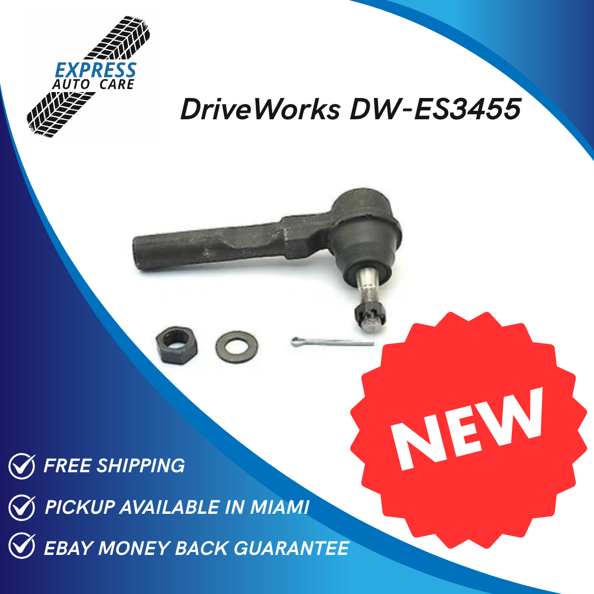 DriveWorks DW-ES3455 Front Outer Tie Rod End. FREE Nationwide Shipping + 30 Days Money Back Guarantee via eBay. Pickup Available in Miami Workshop.