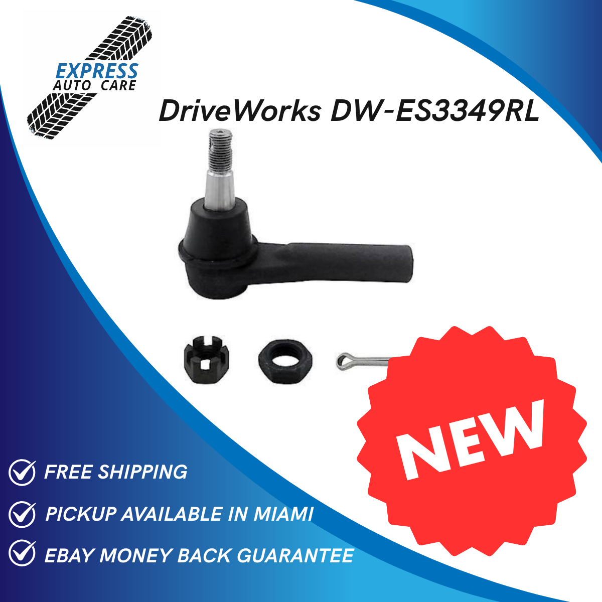 Driveworks DW-ES3349RL Front Inner Tie Rod End. FREE Nationwide Shipping + 30 Days Money Back Guarantee via eBay. Pickup Available in Miami Workshop.