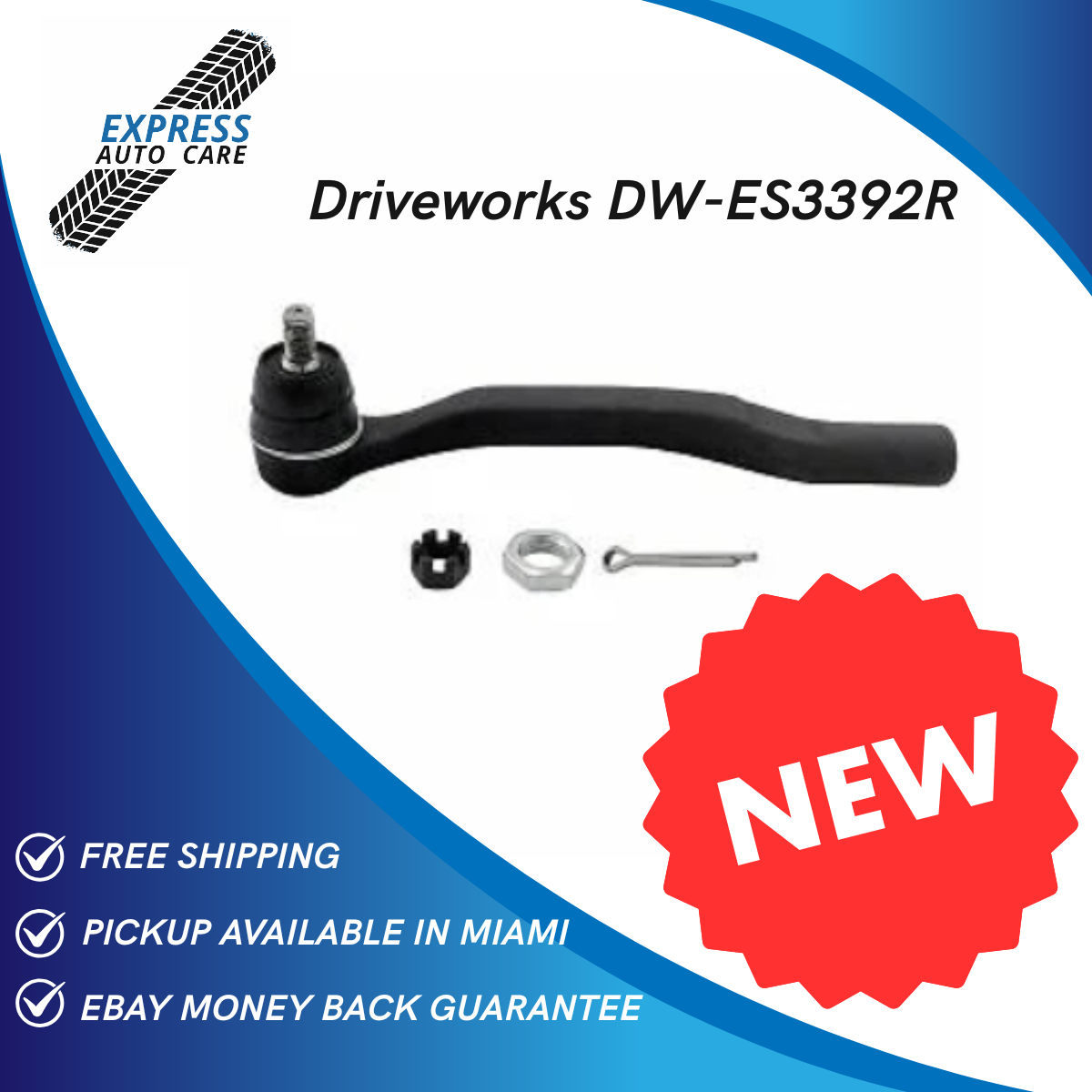 DriveWorks DW-ES3392R Front Right Outer Tie Rod End. FREE Nationwide Shipping + 30 Days Money Back Guarantee via eBay. Pickup Available in Miami Workshop.