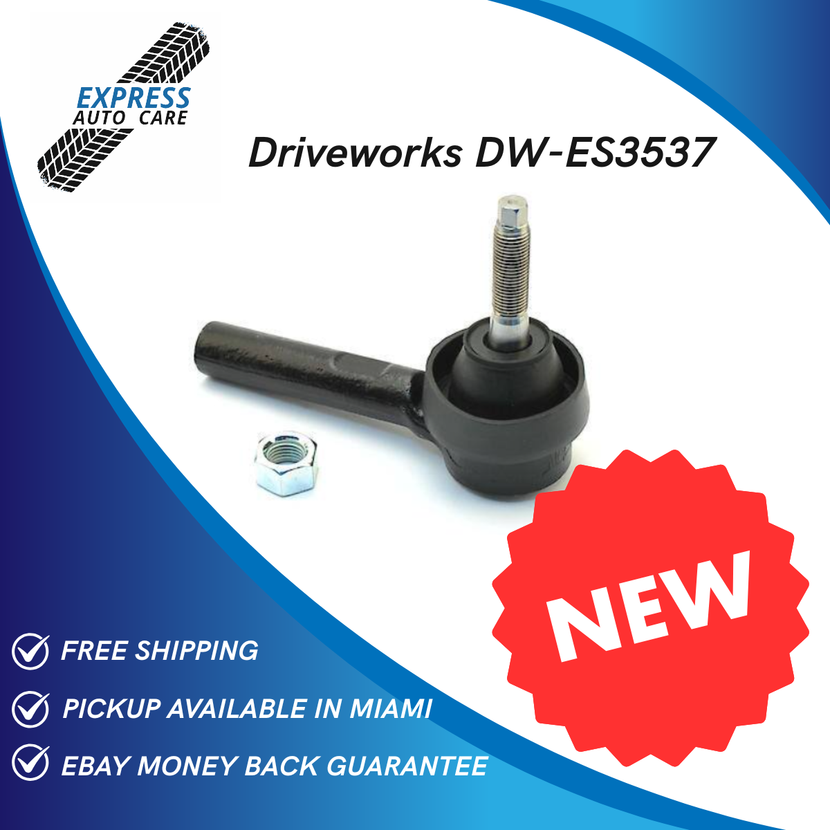 Driveworks DW-ES3537 Front Steering Tie Rod End. FREE Nationwide Shipping + 30 Days Money Back Guarantee via eBay. Pickup Available in Miami Workshop.