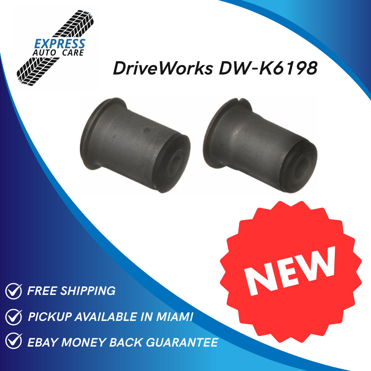 Driveworks DW-K6198 Suspension Control Arm Bushing Kit. FREE Nationwide Shipping + 30 Days Money Back Guarantee via eBay. Pickup Available in Miami Workshop.