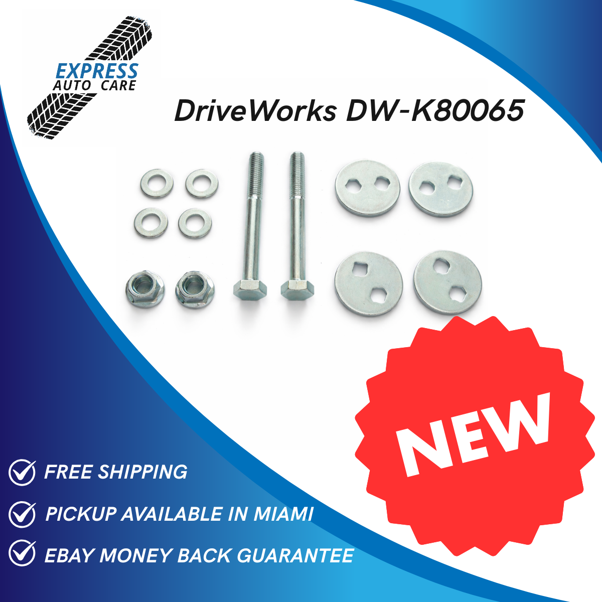 DriveWorks DW-K80065 Caster / Camber Bolt Kit. FREE Nationwide Shipping + 30 Days Money Back Guarantee via eBay. Pickup Available in Miami Workshop.